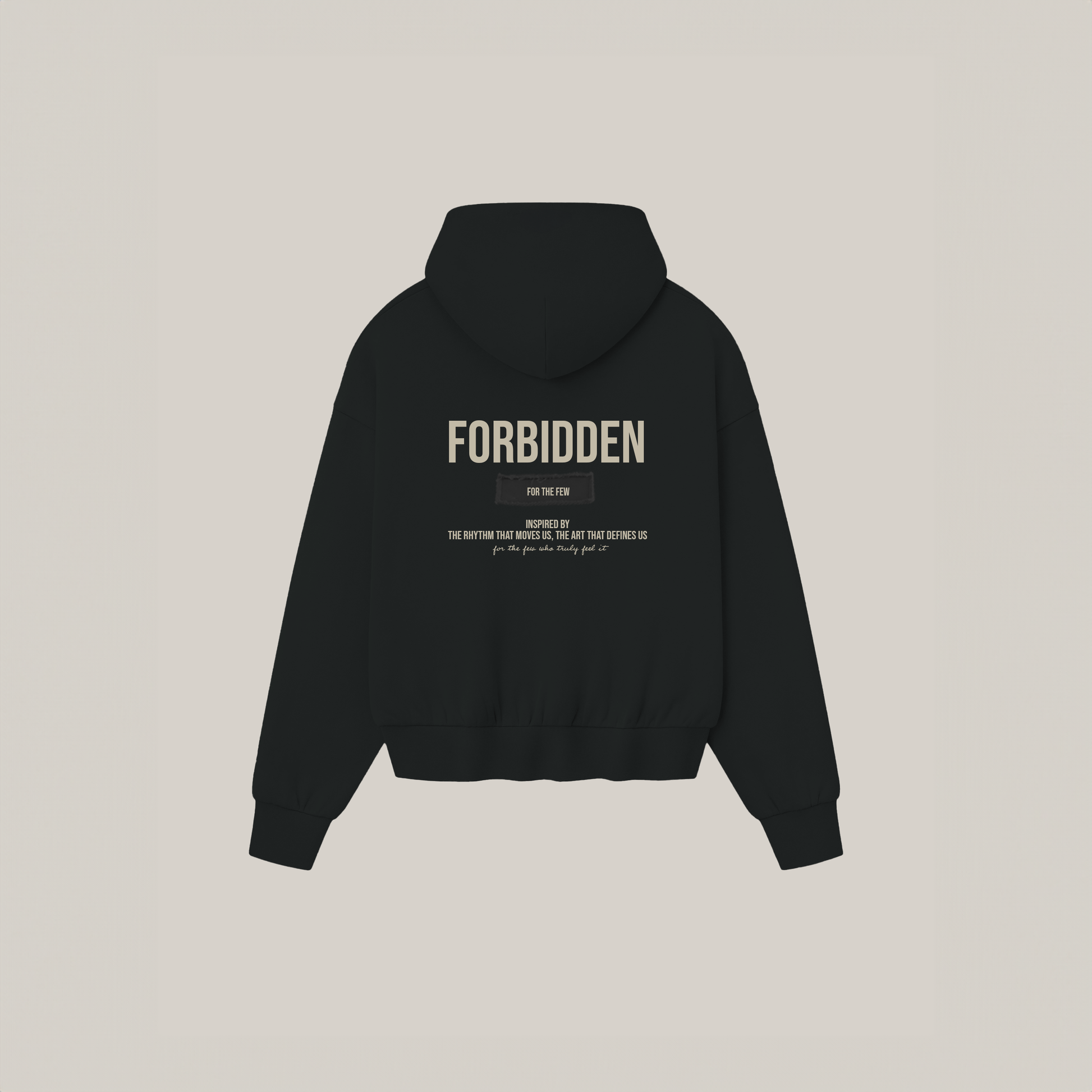 Built with a double-layer hood, kangaroo pocket, and riveted detailing for an elevated, accessorised look. Front showcases HD-finish patches with For The Few and chest logo branding. Back features the bold signature logo and the collection tagline, all completed in hand-printed HD detailing.
