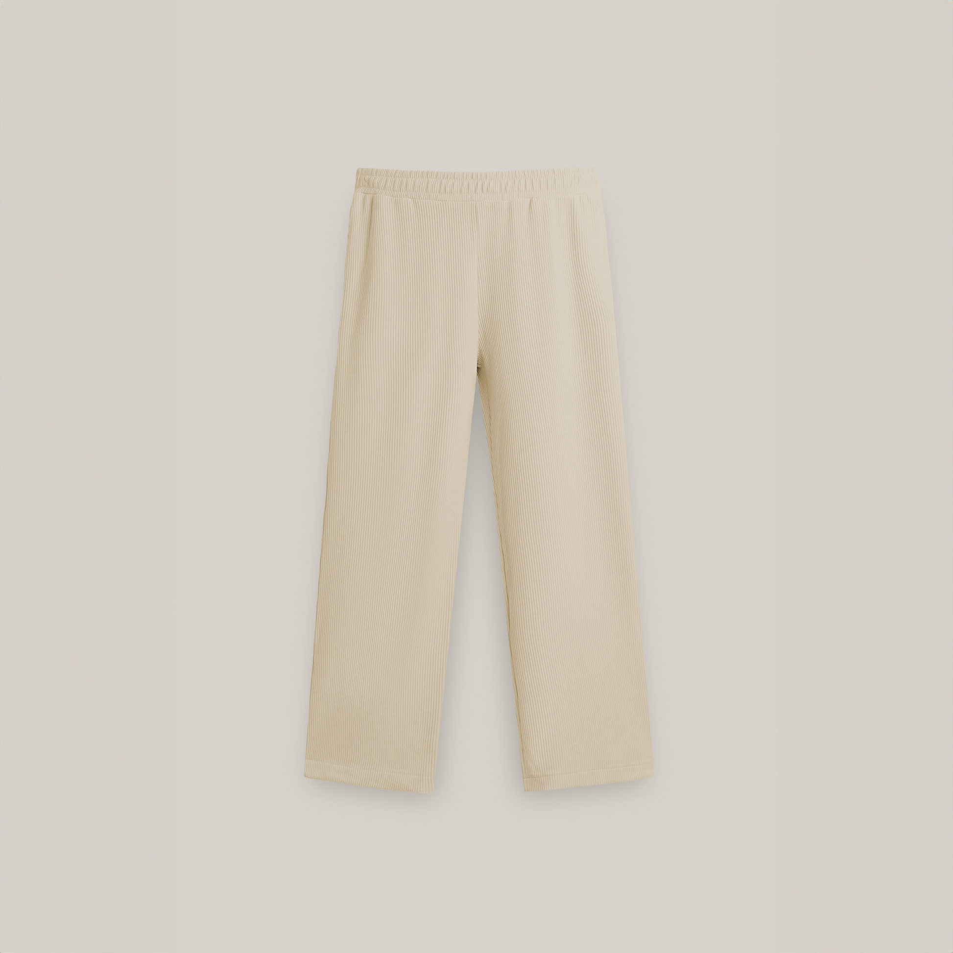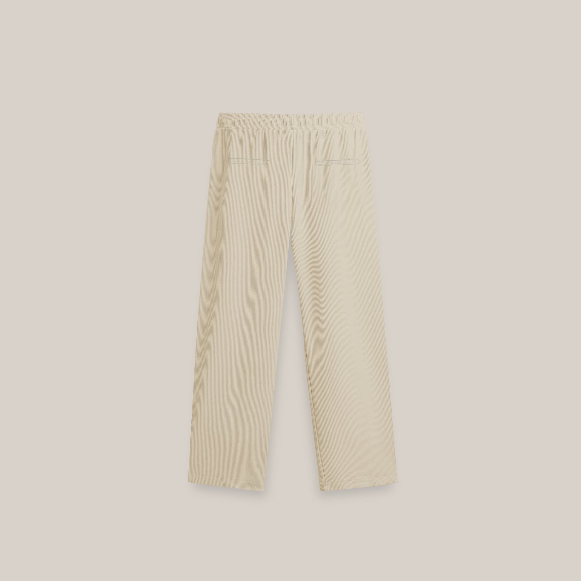 Featuring two side and two back pockets with an elastic waist band with drawstrings. The pants are tailored in an exquisite self-ribbed fabric.